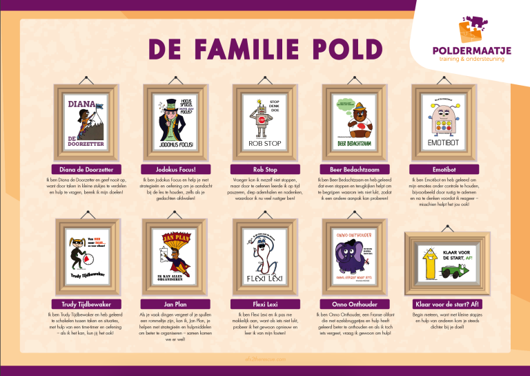 Richt het basisonderwijs zich zowel op de emotionele en verstandelijke ontwikkeling van de leerlingen, op de ontwikkeling van creativiteit en het verwerven van sociale, culturele en lichamelijke vaardigheden, het POLDermaatje richt zich vooral op de doelen die voor al deze leergebieden belangrijk zijn. Denk hierbij aan; goede werkhouding, reflectie op eigen handelen en leren, uitdrukken van eigen gedachtes en gevoelens, respectvol luisteren naar anderen, ontwikkelen van zelfvertrouwen etc. Dit doen we m.b.v. de pedagogiek van EF2TheRescue. Deze pedagogiek is mede ontwikkeld door Dr. Laurie Faith. Het is geen pasklaar programma maar een aanpak die er niet alleen voor zorgt dat de mindset van de leerling verbeterd, maar ook het gedrag, het handelingsvermogen en de schoolresultaten van de leerling. We gebruiken hiervoor 10 personages die allen een executieve functie verbeelden. Mocht je hier meer over willen weten dan zijn wij altijd bereid om in een teamvergadering over te komen vertellen en je bent natuurlijk van harte welkom om eens bij het POLDermaatje.